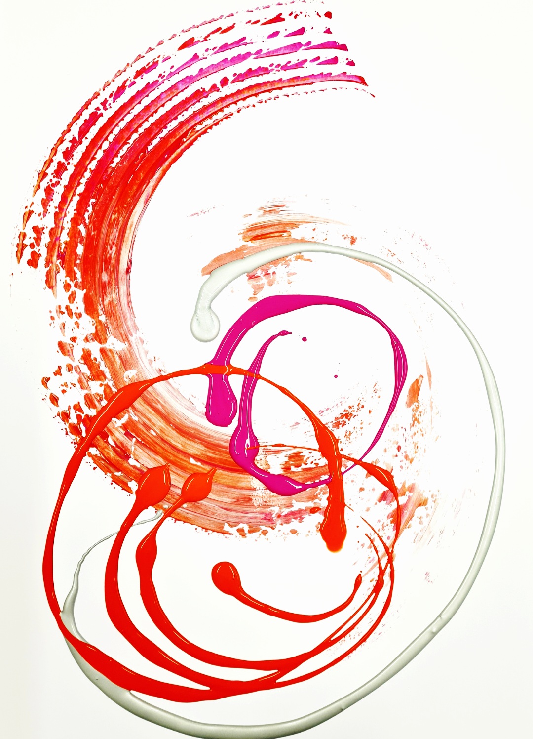 Im Hintergrund fließen Gedanken, Farben und Strukturen zusammen. Ein neuer Raum formt sich!